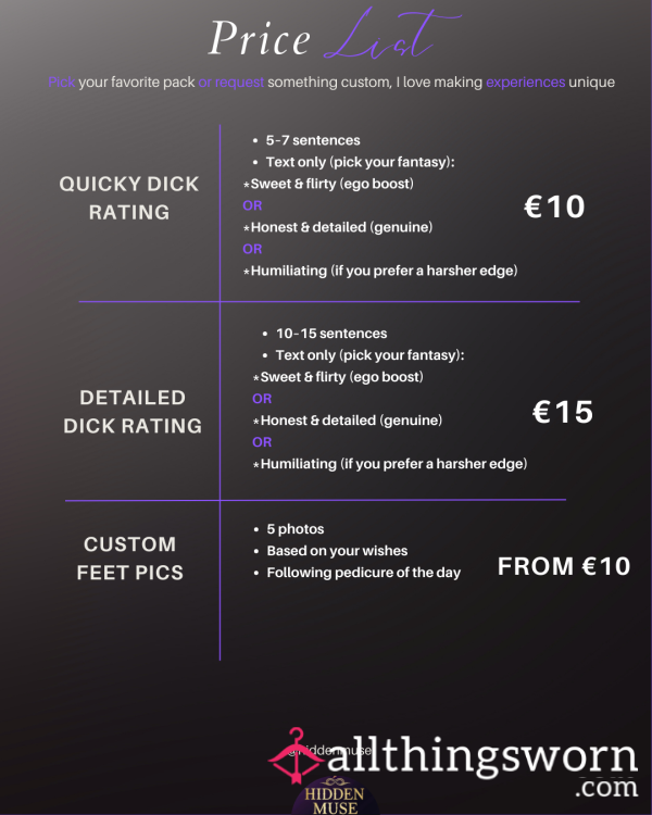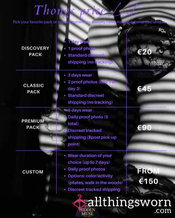 Worn socks, lingerie or custom items designed to tease, tempt, and satisfy.