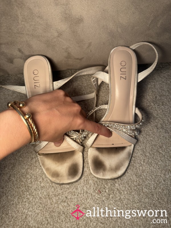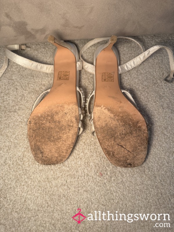 These white satin heels with pearl straps have been worked into the ground for you. The satin is scuffed, the pearls rubbed against my skin until they’ve warmed to me, and the insoles? Completely branded with my toe prints. Every mark, every crease, every stain tells a story of how many times I’ve worn them without mercy. They’re not just shoes anymore, they’re soaked in me, ruined in the most perfect way, and now they’re begging for a new pair of filthy memories