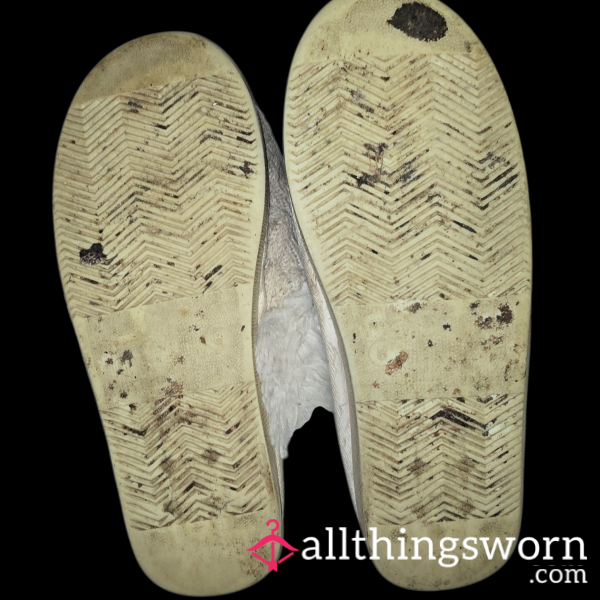 My comfy, well loved black slippers! Toes grooves and heel imprints these slippers have seen my lovely feet...