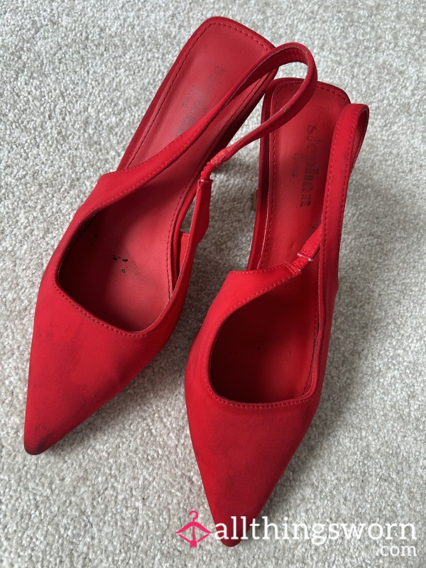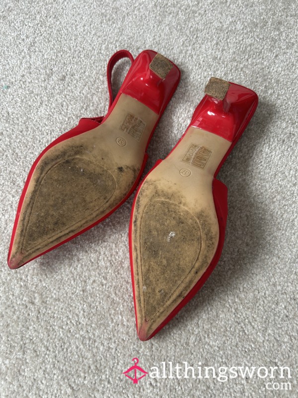 Dirty and very well worn office heeled sandals