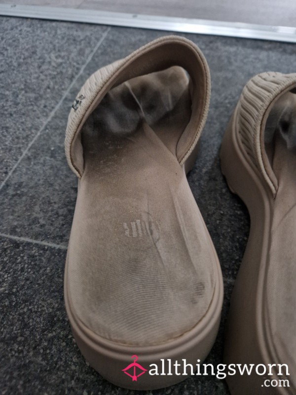 Old crocs worn for 3 years walked everywhere in them worked in them long hours on my feet...
