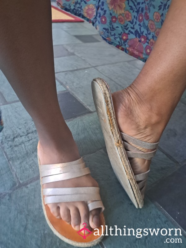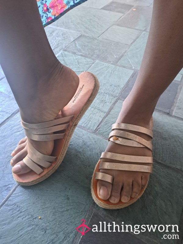 The rose gold straps, and the insoles are all real leather! I love the way leather soaks up the natural oils from My foot skin, and smells so heavenly. These are only lightly footprinted, but who knows what a few more weeks of wear will do!
