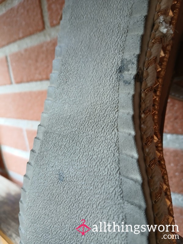Stinky leather insole toms with a vinegar & cheese combo scent. Visible toe, ball, and heel sweat prints...