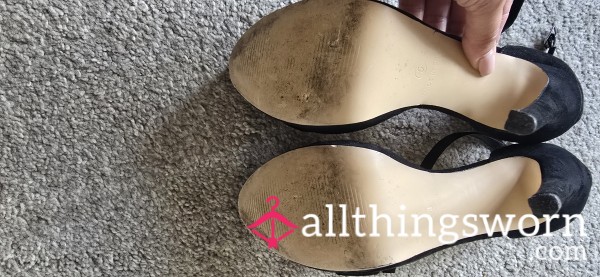 Black patent heels, well worn with dirty soles which are begging to be cleaned. Custom clips can be...