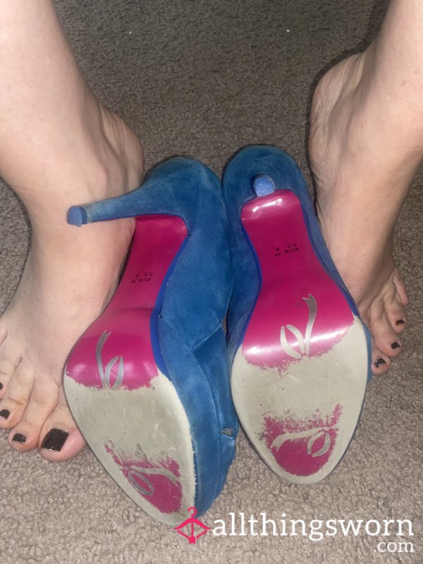 s**y strapped light pink suede high heels, well-worn by me. Will wear for another 24hours before sending to...