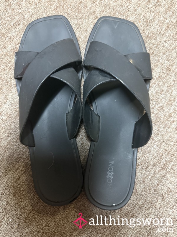 Very worn work shoes, if u look close enough you can see the tan lines from wearing them...