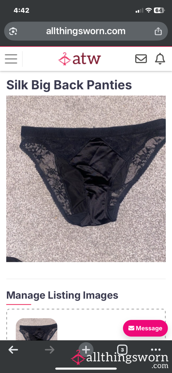 Silk and lace big back panties £20 plus £5 extra days and £5 postage