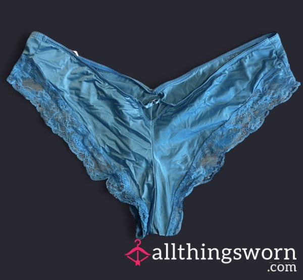 Light blue victoria’s secret panties with cutout on the back and lace trim Size L Price is with 24 hours wear but can be worn for however long :) Message for more add ons