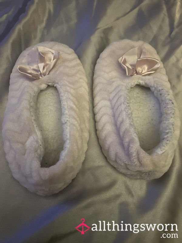 Baby pink fluffy slippers worn and owned for 10 months with a nice little aroma to itπ...