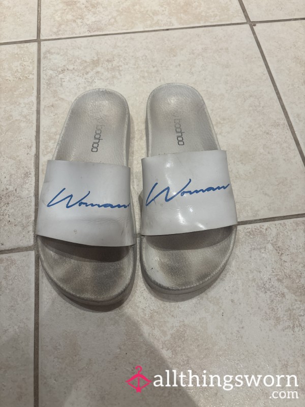 Womans sliders size 3 well worn, have toe impressions from wearing them