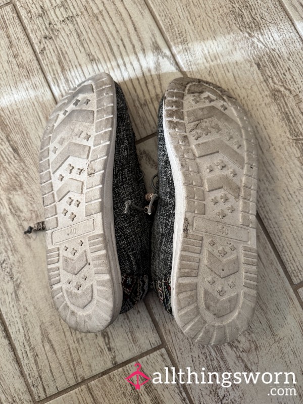 Grey flat shoes well worn and can be worn more to meet your needs π...