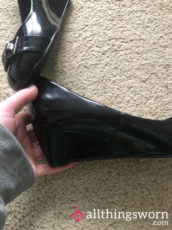 Step into the comfort of these well-loved blue heels! Worn for over a year, these beauties are molded...