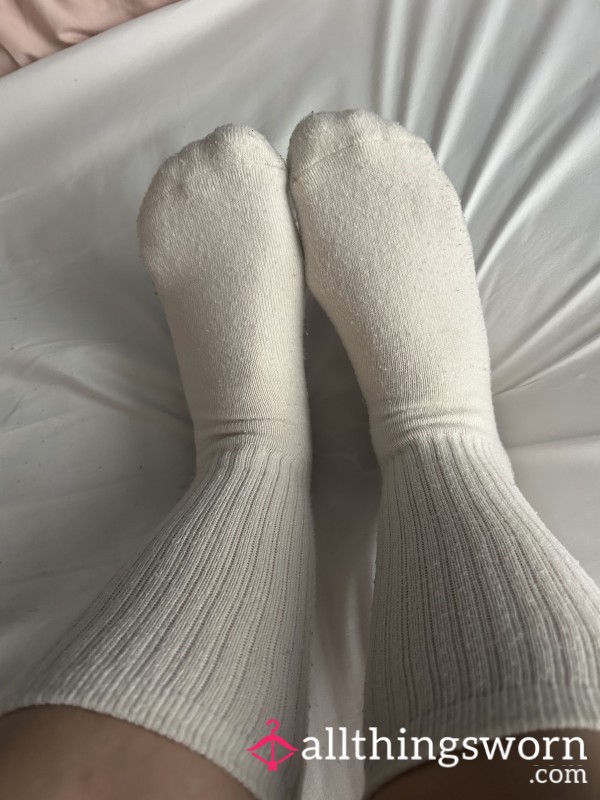 Selling these white Nike socks, already wore to the whole day about to go to the gym in...