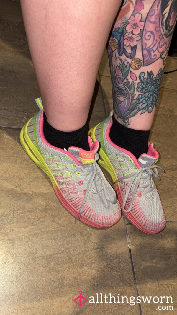 Well worn work trainers, worn so much the soles are bulging 🤦♀️...