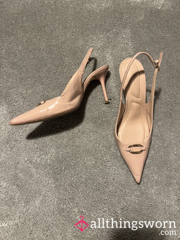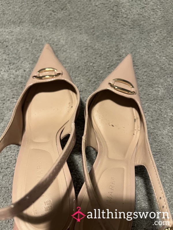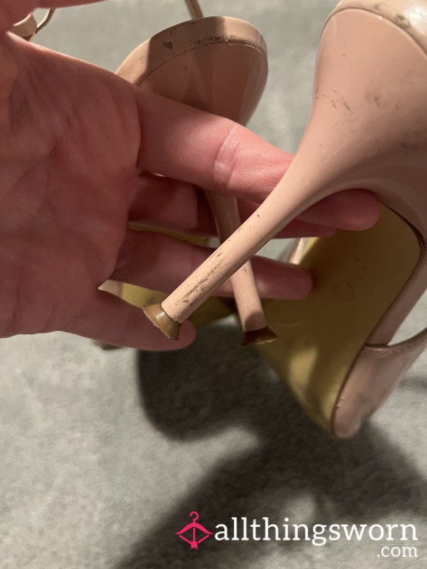 Stinky well worn work heels. I’ve worn these for months & are ready to go to someone who will worship them! Worn without tights or socks so my bare feet have been in them daily!