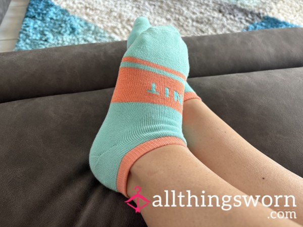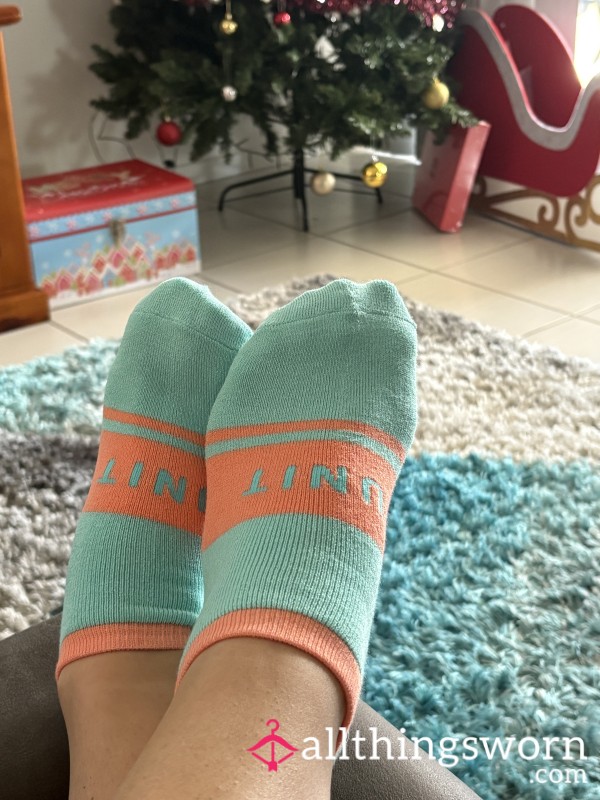 Teal/light blue mid ankle length sock with flower detail 💌 price includes shipping, 1 day of wear, tracking &...