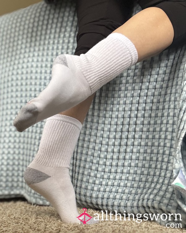 Worn sports socks.....can be stomped in something or just worn in my stinky slippers...