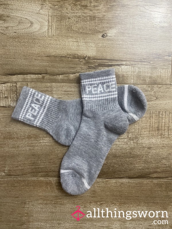 Well worn, all day and a dirty dog walk! Black trainer socks, hole in the bottom 💋...