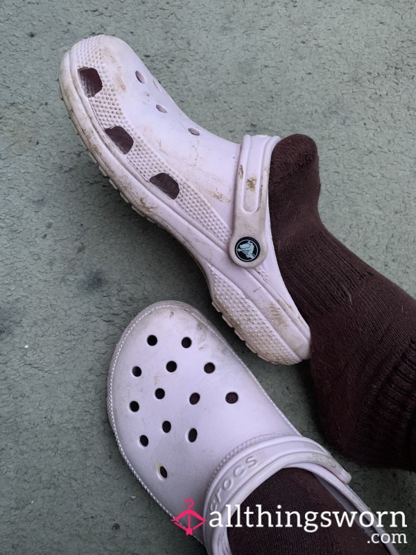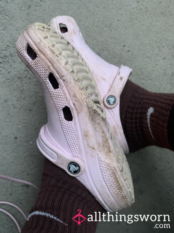 My soft pink Crocs, worn slowly and comfortably through my day.