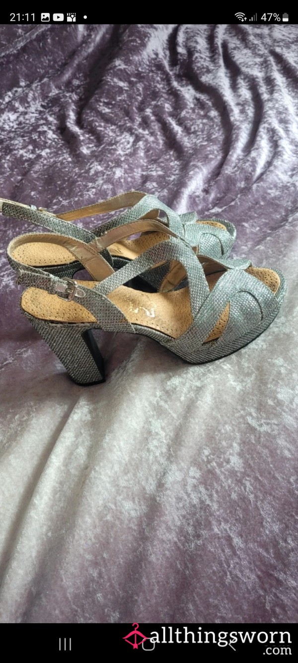 Experience the allure of these perfectly worn stripper heels. A little bit of sparkle, a lot of story....