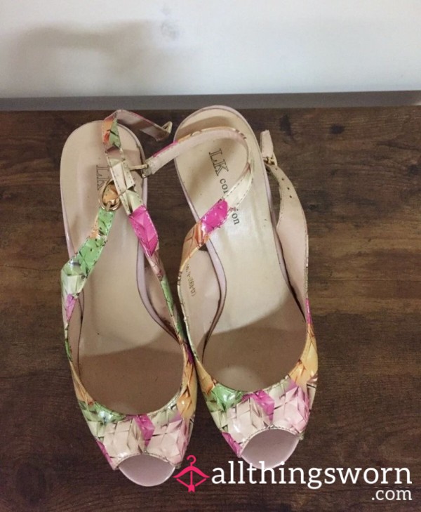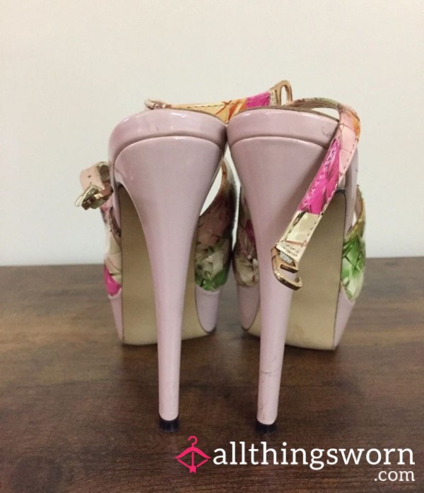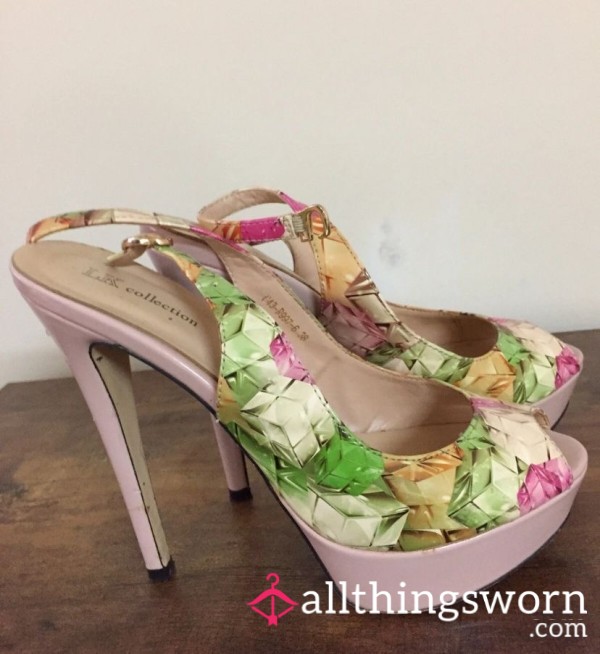 Size 5, glittery genuine pleasers. Worn these for approx 3 years whilst being a stripper, they’re filthy be...
