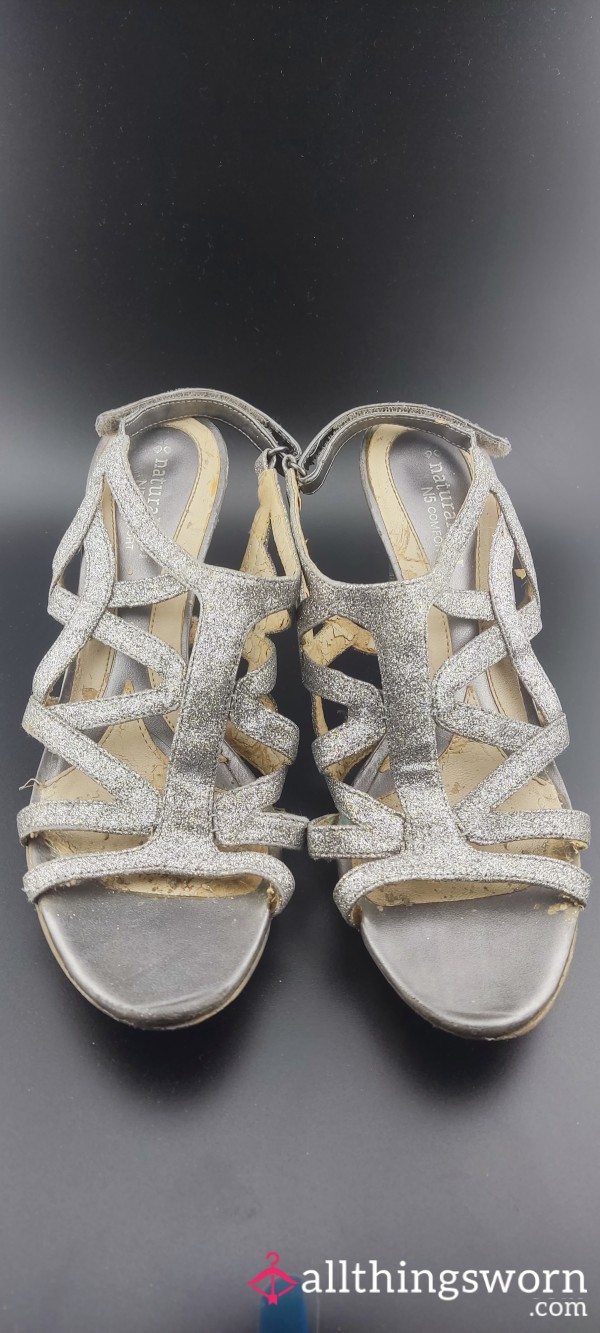 Delivery included. Well worn, black heels, dirt soles....
