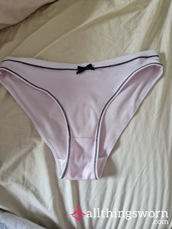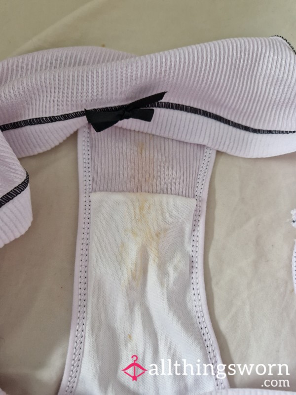 s**y little set of hot pink bikini panties paired with a fishnet bodysuit. Worn all day... and night!...