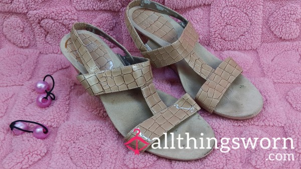 Well worn chunky heels size 7 My beautiful soles danced the night away in these..😍 Good quality visible wear!...