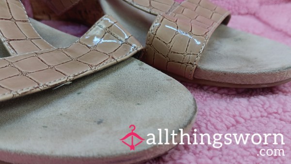 You can almost smell these from there, can't you naughty boy? Get this amazing deal and get prepared to get addicted to my delicious feet scent. My feet get that perfected feet/cornchip/"fritos toes" scent and these heels, although are open, smell STRONG! First c*m first serve, these will not last at this special price sweeties. Just look at those sweaty insoles!!! Just $39!