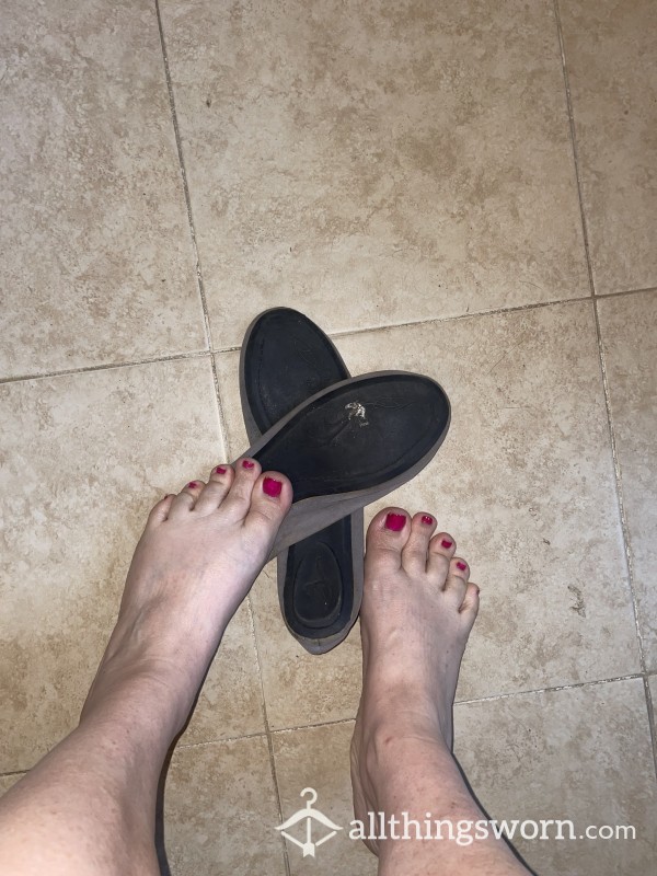 Well worn, but plenty of life left in them. Underneath are filthy. Size 7...