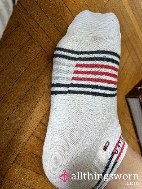 white ankle socks one is bench brand, i donβt know the other brand odd socks that were paired together soles are...
