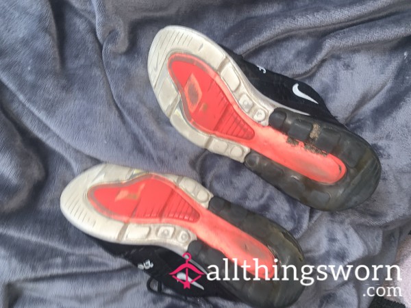 The insides are warm, broken-in, and hold that powerful post-gym smell. The soles show real use. When they arrive, you’ll know they’ve been worked in properly.