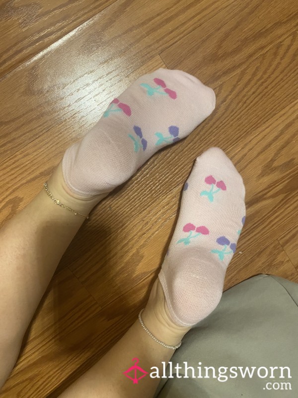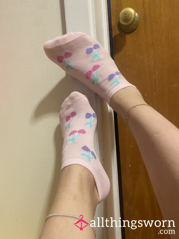 These playful shin-high socks, featuring charming cherry design, have been with me on a lively rollerblading adventure.