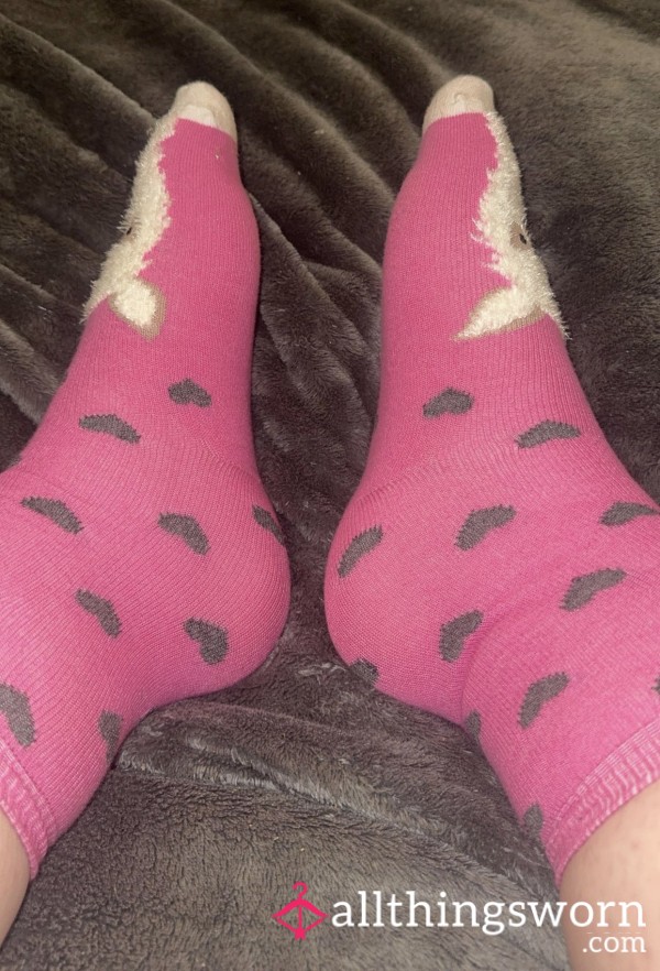 Well worn with holes my beloved old socks very stinky 24 hour wear on them...