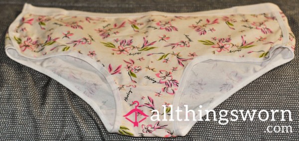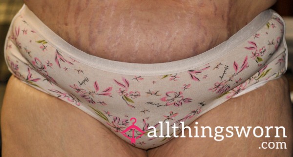 Imagine the soft cotton fabric, now infused with my personal scent and the heat of a true Carolina woman. The delicate pink flor*l print against the cream is a tease, a hint of the sweetness within. These size XL hipsters have hugged my BBW curves perfectly, capturing the essence of my most intimate moments.