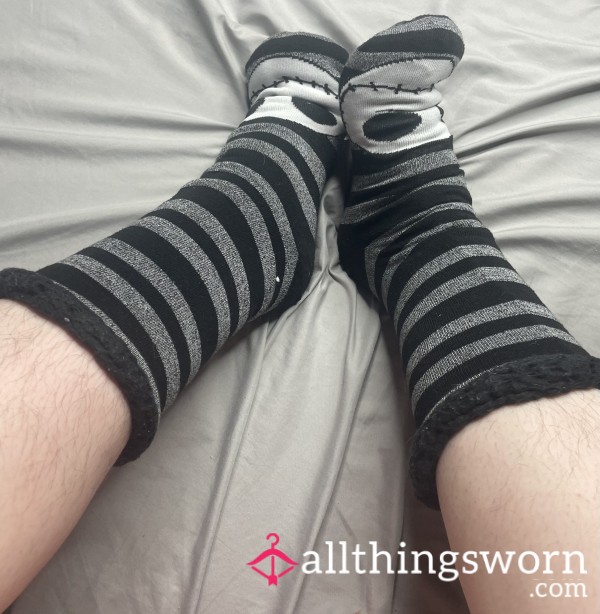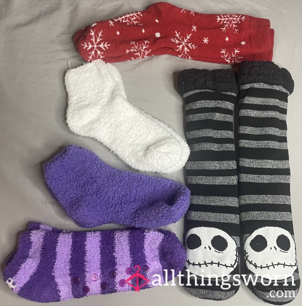 Soft, fuzzy socks, each pair worn lovingly for a full 24 hours and discreetly sealed to preserve condition and scent. Choose from colors available and receive an exclusive photo featuring me wearing your item of choice!