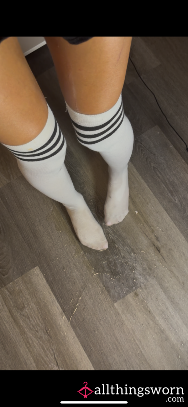 Well-worn black socks Worn all day, done plenty of walking in them...