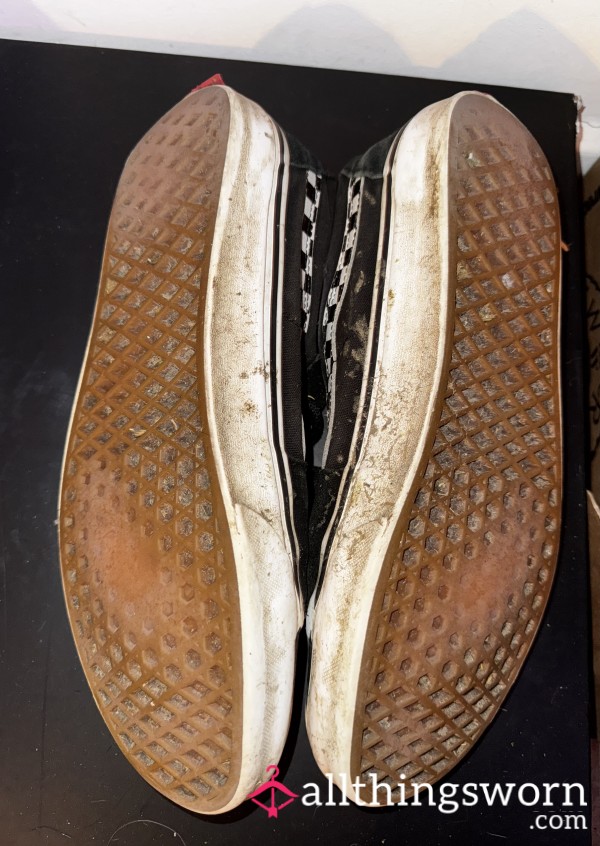 Worn Shoes Vans Trainers Checkered Checkered Vans Dirty Trashed Filthy Ripped Smelly Feet Well Worn Gross