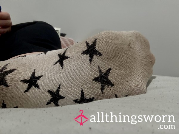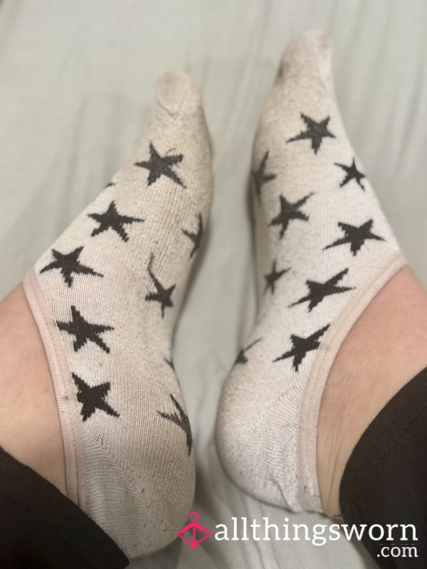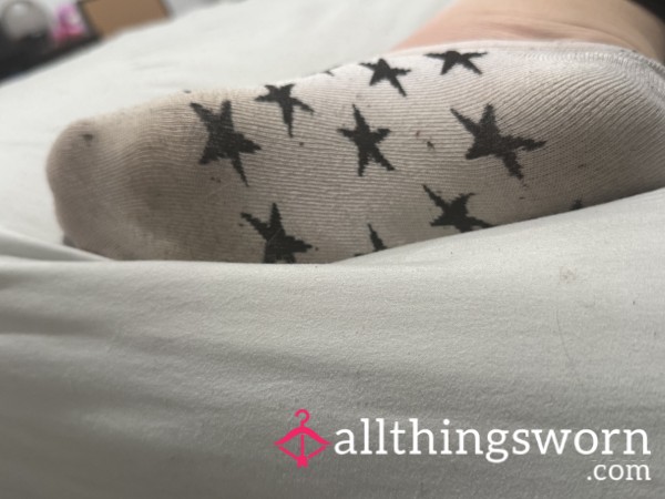 Sweaty, worn out work socks that stink to high heaven. I work on my feet all day and work up quite the sweat in all my socks! They’ve been worn about a year and are stained from use. They will be delivered in double ziplock baggies so you can take in ALL of their aroma!