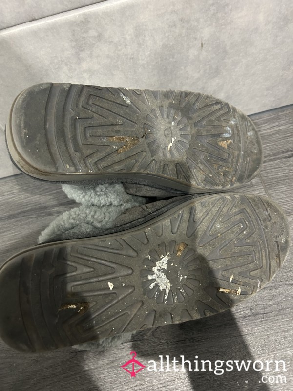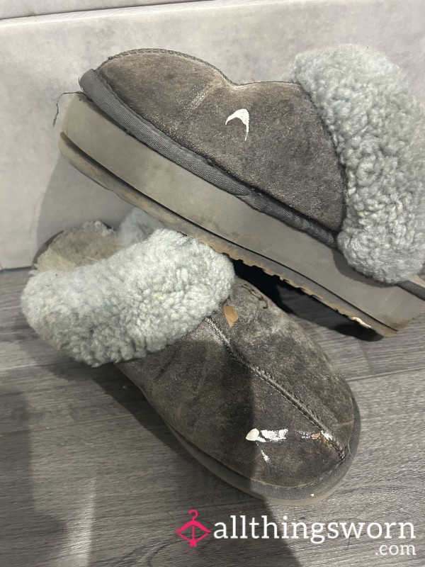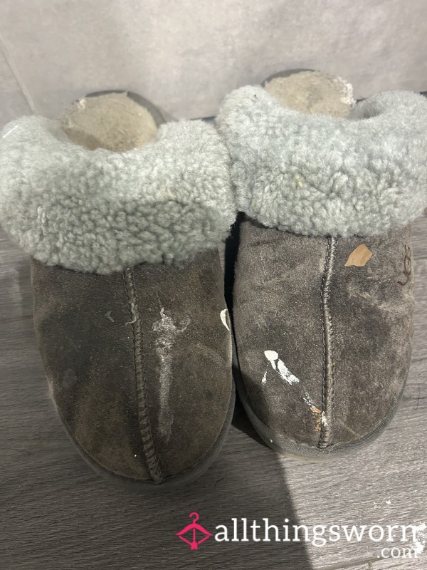 Very worn slippers! Always worn with out socks! In and out the house! Get your money out! 😉...