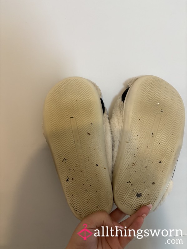 These aren’t just any slides, babe. These are my personal, every-single-day-worn, Ugg fluffy sandals from last summer –...
