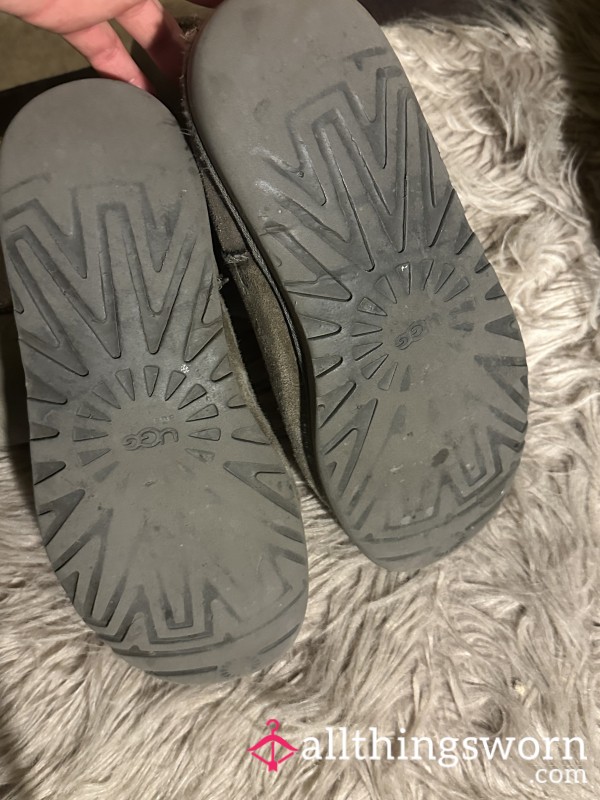 Black flip flops with sweat and gra**....