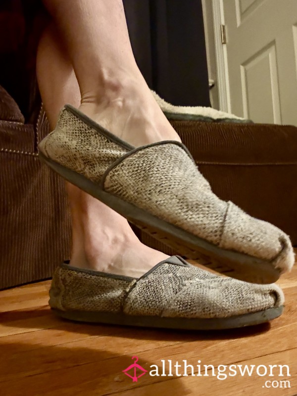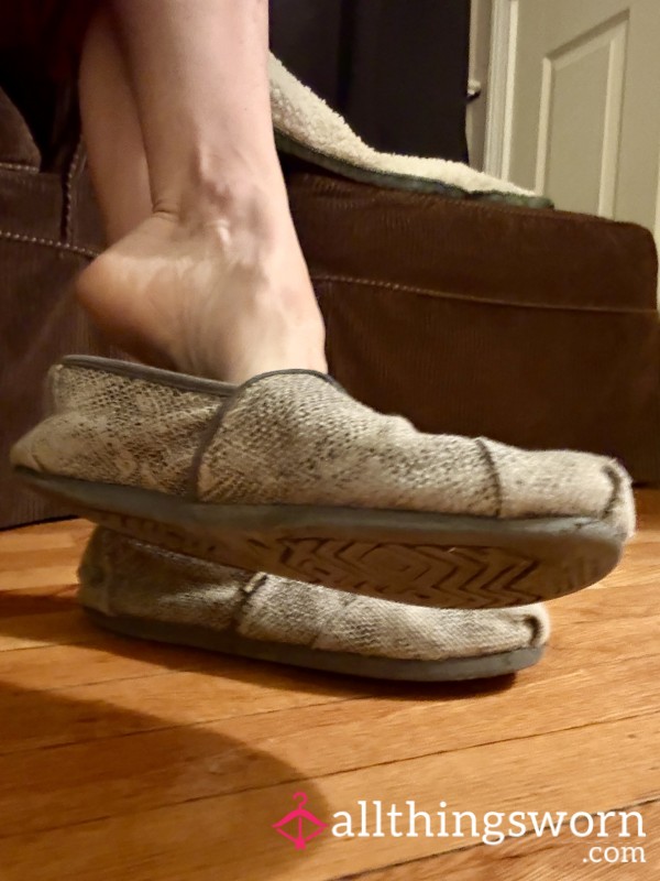 Disgustingly dirty sandals used by me and my mum daily. Toe marks In printed...