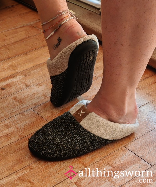 Worn slippers around the house and quick trips to the school house and back. These are worn without...