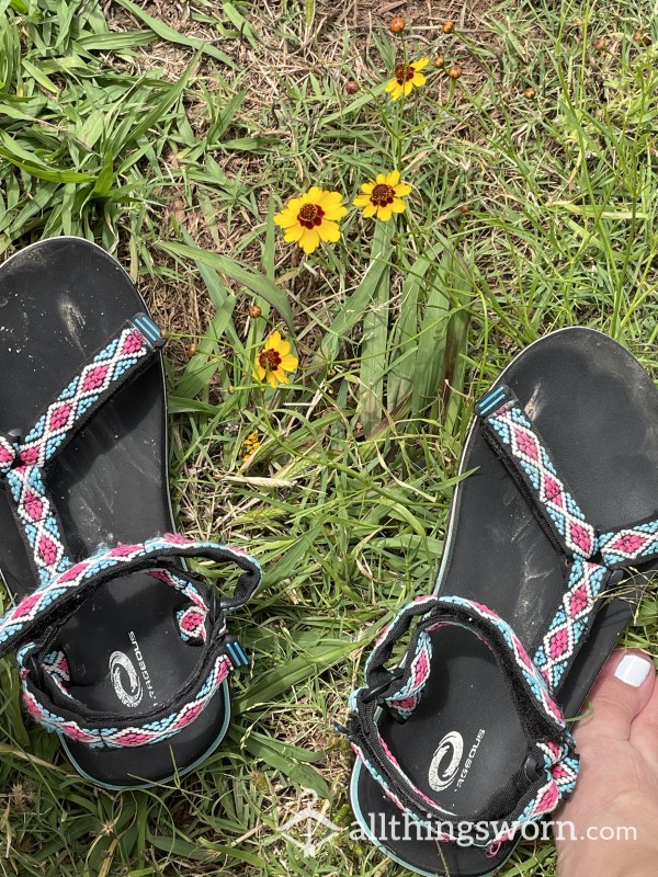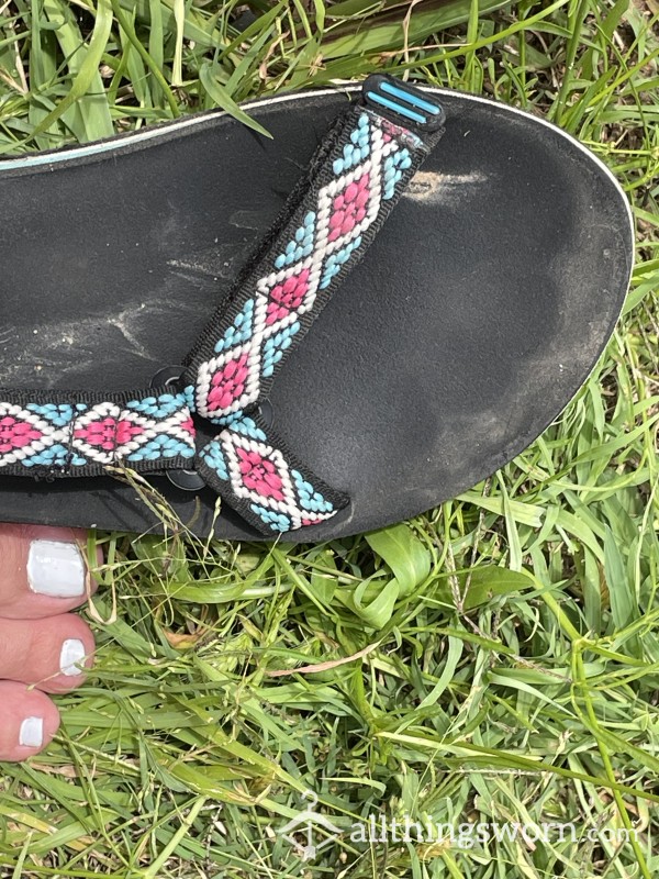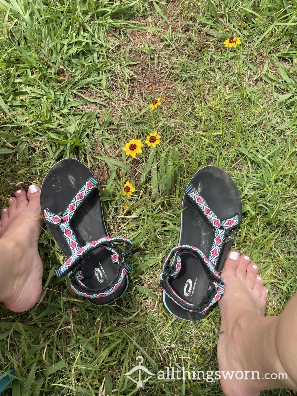 well worn sandals you can see the toe imprints Black buckles Ready for the new home with discreet shipping😉...