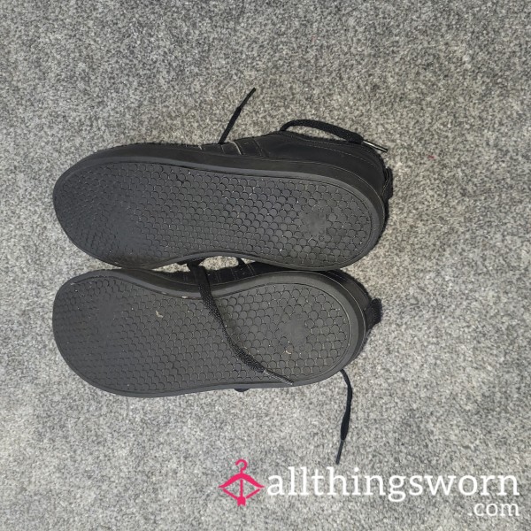 My Well Loved Black and White Canvas Sneakers, Worn With and Without Socks. Comes With Dirt Insoles Included....