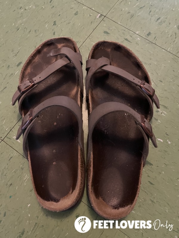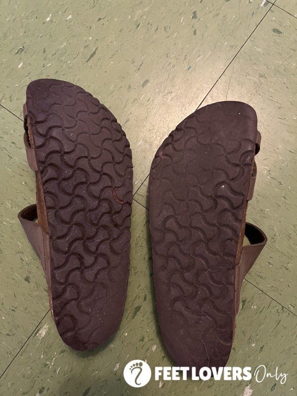 At least 5 years worn. Kept outside of Asian household as outdoor flip-flops. Size 7....