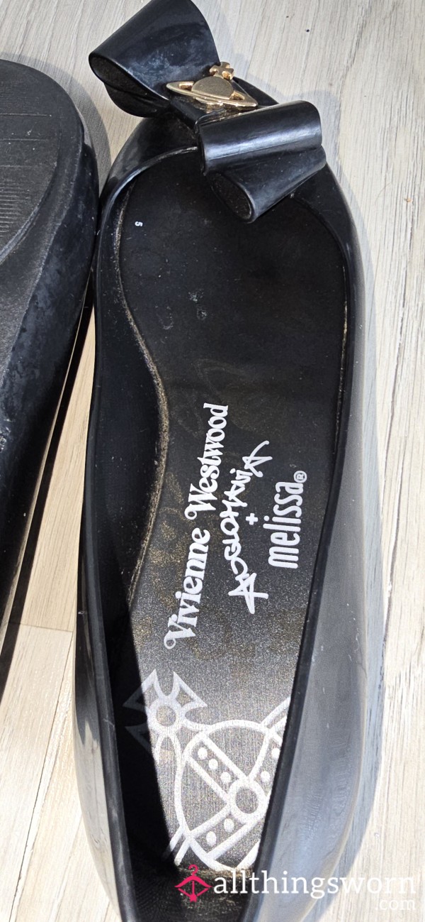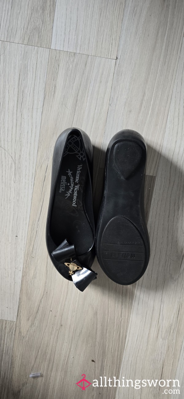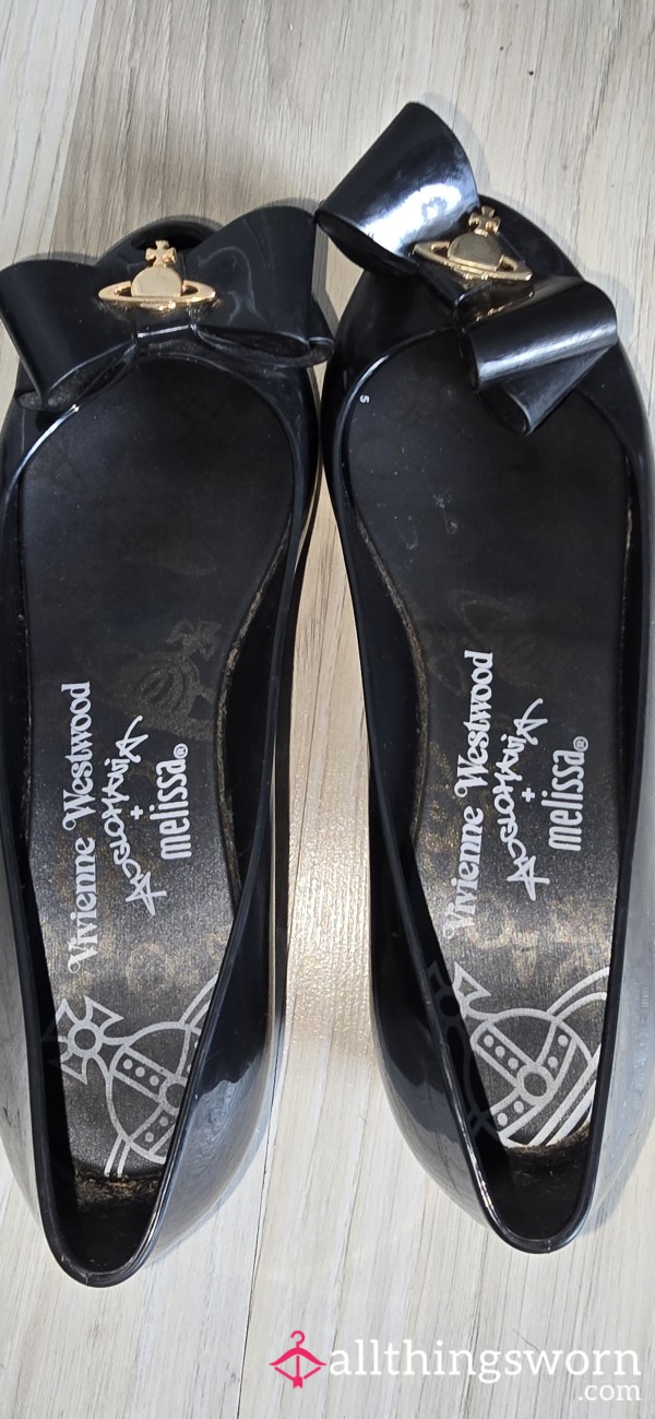 Very well worn black sliders size 5. Toe and heel indents clearly visible π...