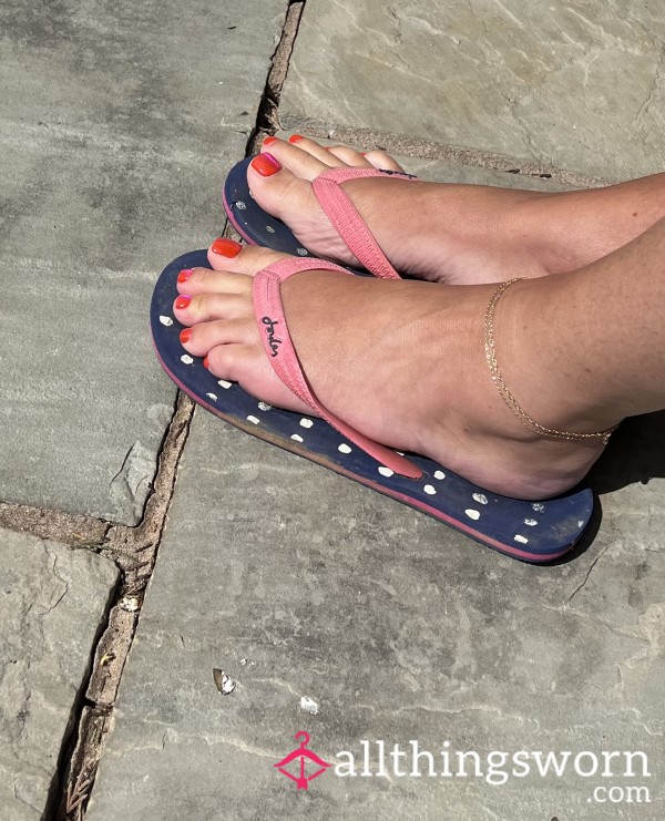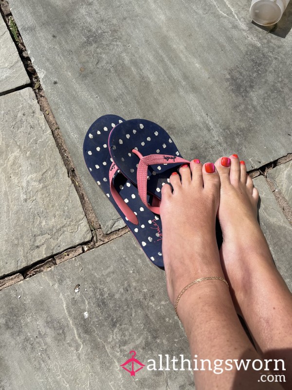 these are my very dirty sweaty worn down flip flops that I wear and have been wearing...