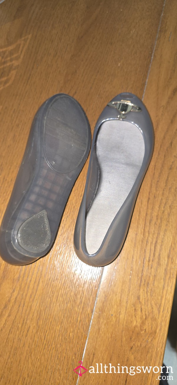 Ballet flats used for a year and a half of practice.... They were used with sweat...
